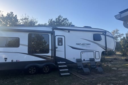 Escape in style and comfort with our luxury Grand Design Reflection 337RLS fifth wheel! Whether you're looking for a weekend getaway or an extended stay, this RV offers a perfect blend of residential comfort and high-end features- all delivered to your favorite campsite if needed.