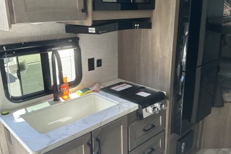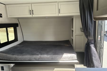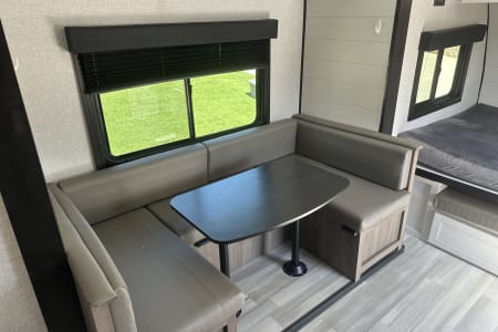 Adventure awaits all over! Rent our brand-new Autumn Ridge with the Moab package and experience the ultimate getaway. This spacious trailer comfortably sleeps 6-8 people with a queen-size Murphy bed that converts to a sofa, cozy double bunk beds, and a U-shaped dinette that also makes into a bed.