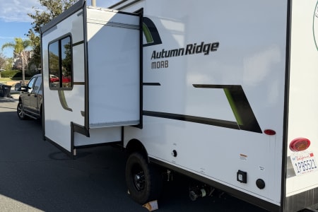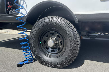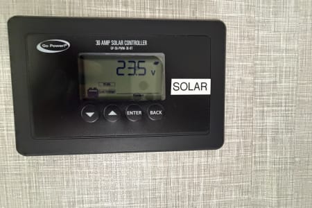 This trailer has a portable Bluetooth speaker, and a huge power awning with LED lights. The trailer is fitted with a roof 200-watt solar panel to help keep the battery charged.