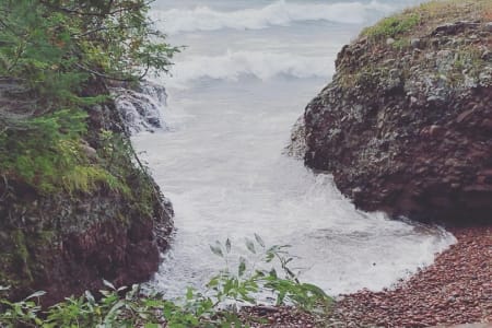 We are halfway up the Keweenaw Peninsula, 30 minutes drive time from the Houghton-Portage Lift Bridge, central to all the local points of interest. The site is adjacent to our house, nestled in what we call the "Grotto", which contains its own little piece of Lake Superior Shoreline, carved between two rock outcroppings forming a private little cove.