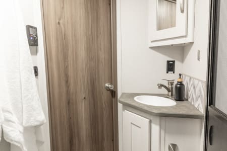 Control the ambiance with state of the art dimmable LED lights through out the entire RV