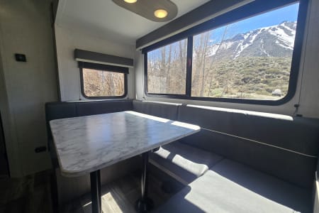 We’ll deliver and set up your trailer at the RV park of your choice—just book your campsite, and we’ll handle the rest! This modern, spacious trailer sleeps up to 8 and is perfect for families or anyone looking for extra room. Features include bunk beds, a cozy electric fireplace, and a convenient outdoor kitchen. Linen Rentals optional and Firepit Rental optional add-ons.