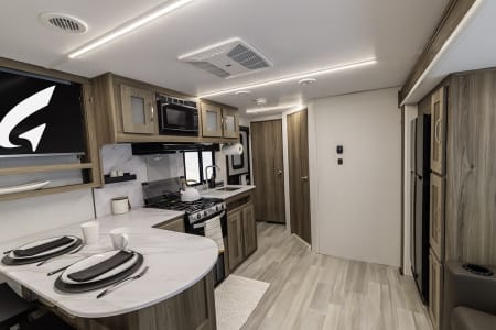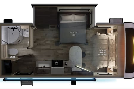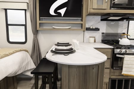 The Go Explorer X203 is more than just a couples RV. It can sleep up to 4 guest and features an olympic size queen bed and the sofa can also convert into a bed at night. The super slide living room expands into a comfortable space for gathering, with a comfortable sofa and a smart TV so you can Netflix and chill!. A lot of great features you can't find in other RV's in the market!