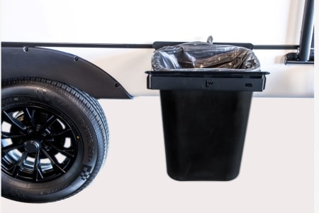 2 Kebloc hooks with attachments for an outdoor trash bag holder and towel rack help keep your RV