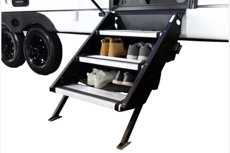 Entry steps include industry-exclusive built-in shoe storage, ensuring your shoes stay organized rather than cluttering your RV or campsite.