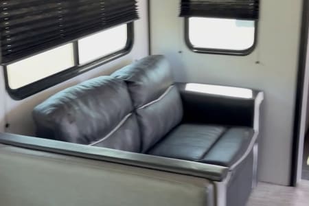 - Large U-shaped dinette and jackknife sofa (both convert to beds)