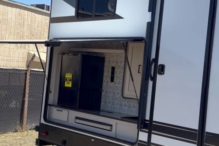 - Outdoor kitchen with mini fridge only (no grill or griddle provided)