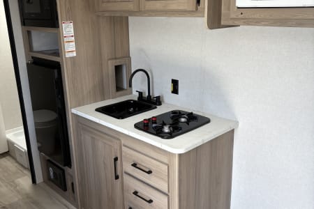 BRAND NEW 2025!!! All the Comforts of a Travel Trailer but easy to tow and affordable. Queen Bed, Dinette Table Bed, Wall Mounted TV, Wall Mounted AC, 2 Burner Kitchen Cooktop, Wardrobe Storage Closet, Hidden Storage under Queen Bed, 6'6 Ceiling. Large Under Sink Storage, 3.3 Cu Ft, Refrigerator 12 Volt, Instant On Demand Water Heater, 6'1 Shower Height, Nice Size Bathroom, Full Pass Through Storage, Portable Solar Ready, Power Awning, Outside Electrical Outlet.