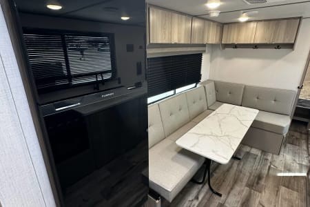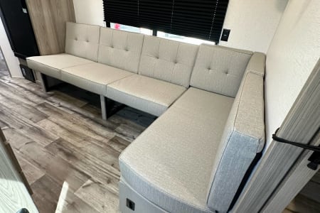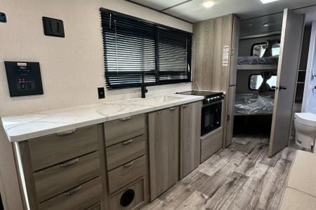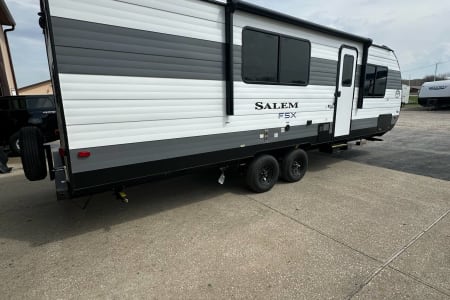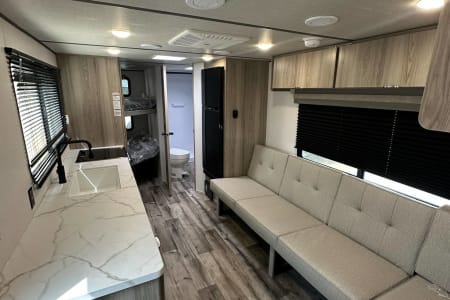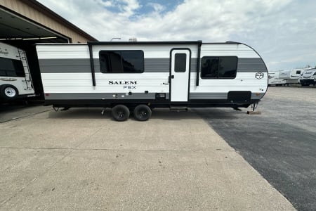 Light weight, easy to pull by most trucks & SUV's. Dry weight of 4,853 with a carrying capacity of 2,697 lbs. Sitting at a total length of 29 ft 11 in, makes this the perfect RV for almost any campground. Easy to tow, easy to park but plenty of room for the entire family. Sleeping up to 7 guests, with 2 on the KING bed, 2 on each bunk & 1 to 2 on the super u lounge sofa. This RV features a power awning, manual stabilizer & tongue jack, KING size bed, two double size bunk-beds, a large 11 cubic ft electric fridge/freezer, 13,500 btu a/c, 30,000 btu furnace, microwave, large windows, bathroom with a shower, toilet & sink. Table for the super u lounge sofa/dinette is removable & folds up, so could be taken inside or outside or just stored away. Plenty of storage space. This is the perfect RV to try out camping & see if you like it, if you do, you are in luck, we sell them as well at our family owned dealership in Chesaning.