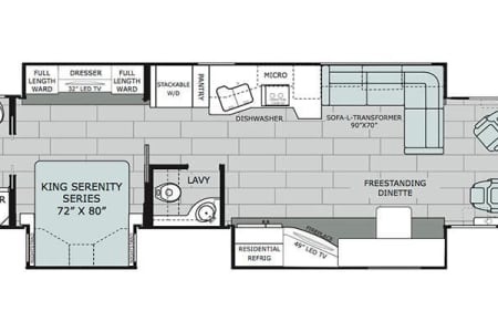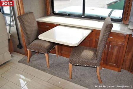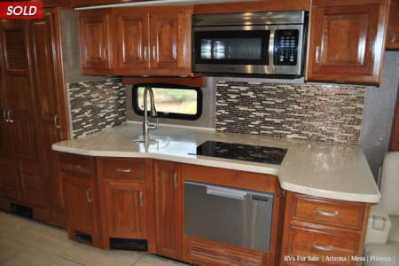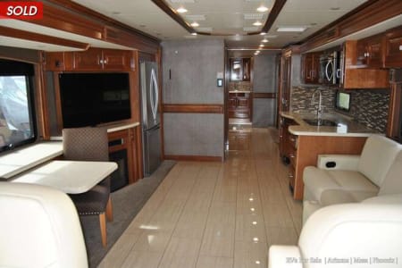 There are Class A diesel motorhomes and there's the Holiday Rambler Endeavor. Stop dreaming about the RV lifestyle, and instead, experience motorhome bliss. This Endeavor features hardwood cabinetry, residential-style seating and wall-to-wall high-gloss tile flooring in the living area. With 84" interior ceiling heights, polished solid-surface countertops and a rear wardrobe with cedar lining in the bedroom, you might even forget you're camping.