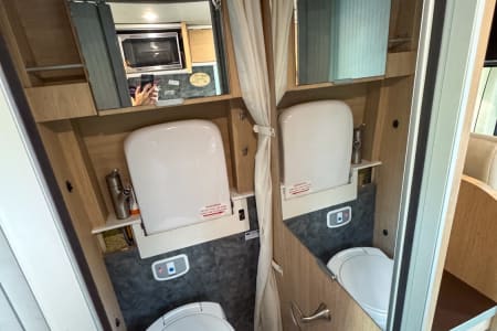 Bathroom: Wet bath with shower and cassette toilet