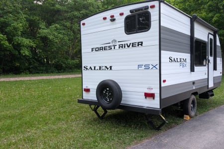 This camper is made for fun times with family and friends! This model has a camper size queen bed in the front and large double bunks in the rear. We've taken it to West Virginia and this unit pulls like a dream! The camper has plenty of room while still being considered a "small" camper that can fit into any campground.