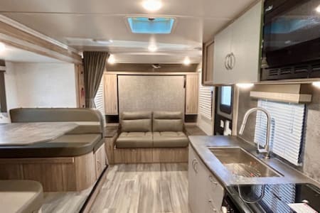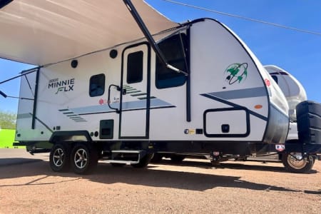 This 2022 Winnebago Micro Minnie FLX 2306BHS is the perfect mix of compact and capable. It sleeps up to 5, with rear bunks for the kids and a convertible Murphy bed up front. Inside, you’ll find a fully equipped kitchen, a bathroom with shower, and a dinette that doubles as extra sleeping space.