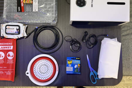 • Stocked with dish soap, trash bags, paper towels, basic kitchenware