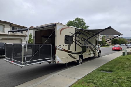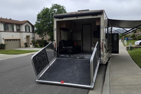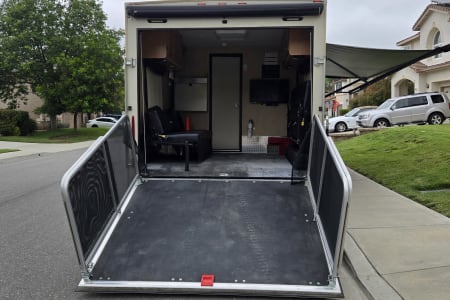 This thing is amazing! Going to the desert? You can drive your desert toys right into the back. Going to a music festival? How about an elevated back patio with outdoor speakers, a TV, outdoor lighting, and two awnings for some shade?