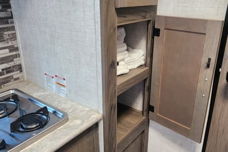 + Propane stove, microwave, fridge, and A/C – All the essentials for your campsite kitchen