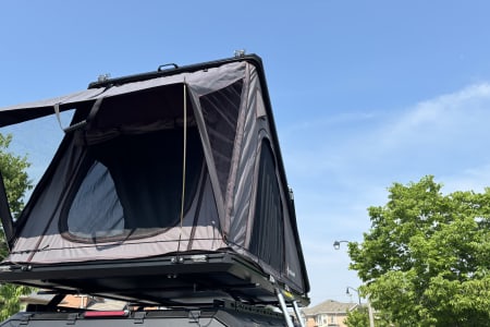 Atop this mighty truck sits a high-quality rooftop tent that comfortably sleeps two adults, offering elevated sleeping quarters away from uneven ground and pests. The tent sets up in minutes and provides a cozy retreat with ample ventilation and weather-resistant materials to keep you safe and dry in all conditions.
