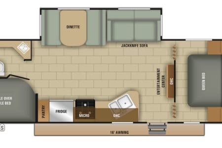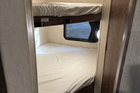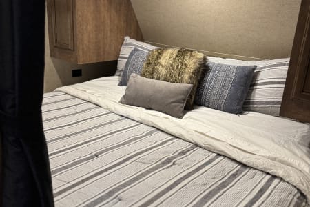 Spacious & Comfortable – Sleeps your crew in comfort with two bunks, a fold-out couch, dinette breaks down to a small bed, and a king primary bed