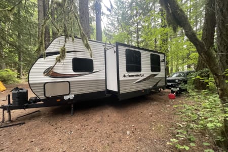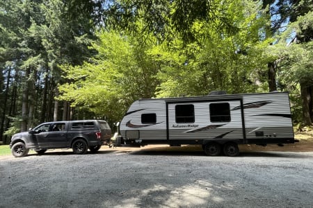 Ready to escape into the great outdoors? Our 30-foot Autumn Ridge travel trailer is your cozy home away from home! Whether you're chasing mountain views, lakeside serenity, or open-road freedom, this half-ton towable trailer makes every trip seamless.