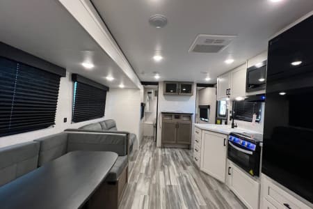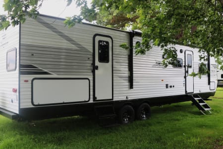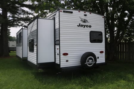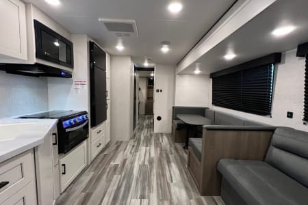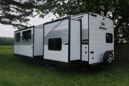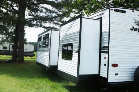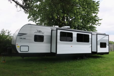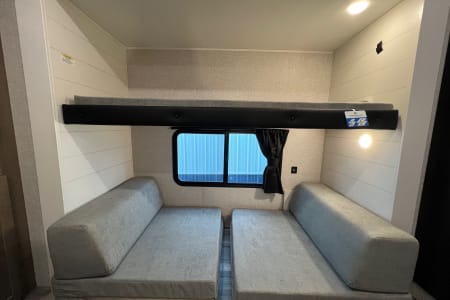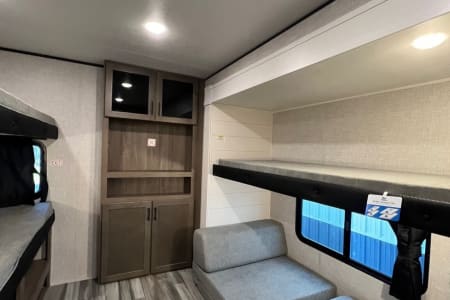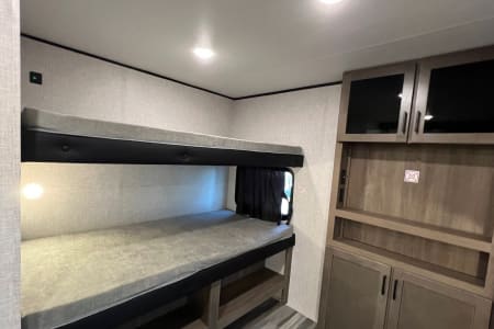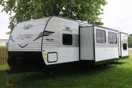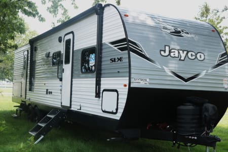 Beautiful, modern, bunkhouse travel trailer that will sleep up to 10 people. Great family unit. Super clean 2025 JAY FLIGHT SLX BY JAYCO MODEL 321BDS.