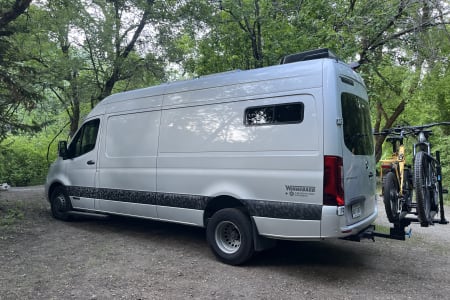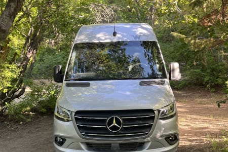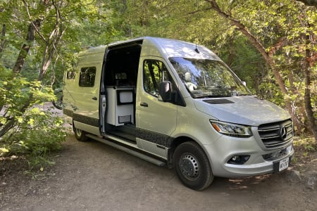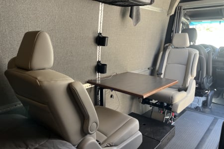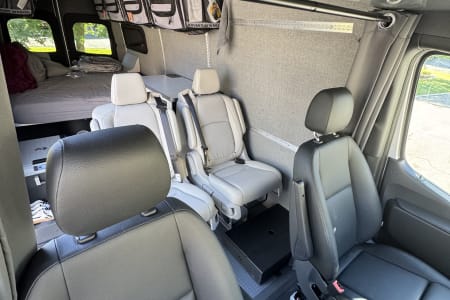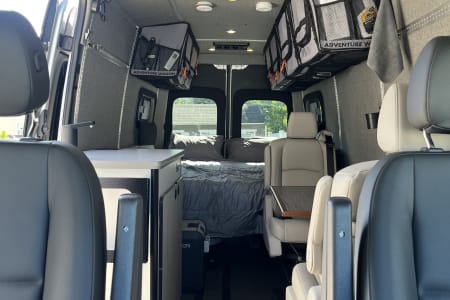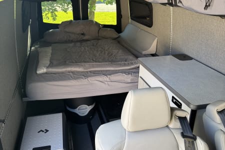 This Winnebago Adventure Wagon offers the ultimate work-n-play layout and off-grid experience. By day work from a comfortable office space for two with high speed Starlink internet, even from the most remote locations. By night sleep in comfort with a queen memory foam mattress and air conditioning. This van is equipped with 7200 watt-hours of power. This is enough to run the A/C overnight and charge laptops and portable devices. The 400w solar panels will recharge the system and shore power is rarely needed.