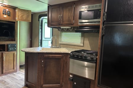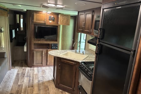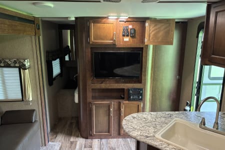 Great camper for a larger family or a group of friends. This camper is in perfect condition with lots of space for cooking or playing games. The outdoor kitchen is perfect for those who want to still have the experience of cooking in the great outdoors but with the comfort of home.