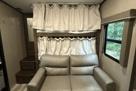 Looking for the perfect getaway on wheels? Our 2020 Grand Design Reflection 268BH is the ideal choice for families, couples, or friends ready to explore in comfort and style. This spacious, bunkhouse-style fifth wheel sleeps up to 8 and is fully stocked to make your trip stress-free and enjoyable.