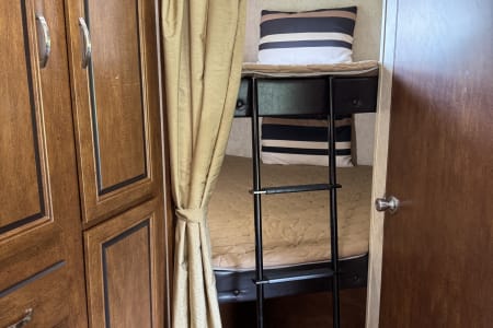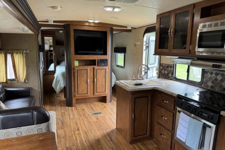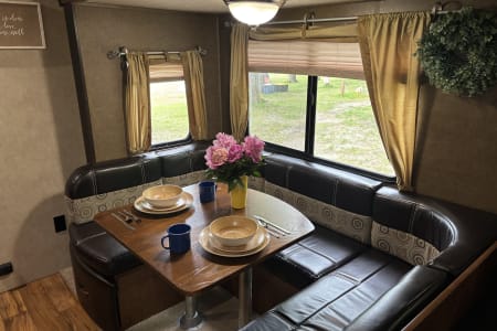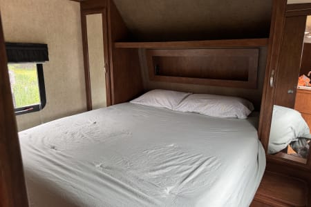 Welcome to Vivian! She's a beautiful 2015 camper who enjoys hosting couples and families! Vivian has a spacious, front master bedroom and a set of rear bunks that are double sized beds. Like most campers, the couches and table can be used for additional heads in beds, but we recommend only sleeping 6-8 for maximum comfort. Speaking of sleeping, all linens are included in the price, simply pack your food and head out!