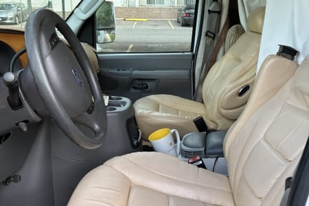 The Ford E350 Super Duty with 10 cylinders helps pull steep roadways and cruises at the posted Interstate speeds.