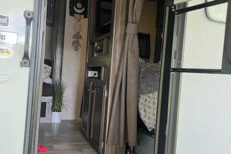 Rent this camper for a fun family vacation. Camper is fully stocked with kitchen utensils, dishes, cookware, beds are furnished with fresh linens. TV comes with a roku. Delivery and set up is available. Queen size bed in the front, two full size bunks in the back, and a couch and table that can convert to a bed. We enjoy the unique layout of our camper, offering large cabinets and a big kitchen.