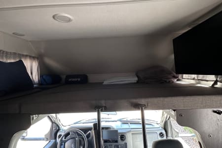 Generous Queen Cab Over Bunk: Perfect for the kids (or adventurous adults), this cozy nook offers a great spot for slumber parties or afternoon naps. TV too.