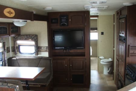 The TV fitted with a Roku (WiFi or hotspot not included) will keep you or the kids entertained in the event of a lazy day. Integrated sound system with speakers throughout will keep the mood up at all times.