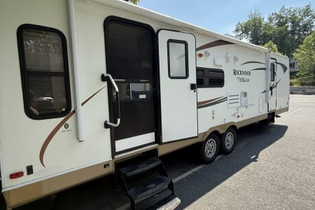 Welcome to our 2012 Rockwood Signature Series Ultra Light. This fully loaded Travel Trailer was fitted with all the bells and whistles when built that make it just as modern as a new trailer today. This unit is a 4 season unit so it has great insulation which keeps the interior quiet when closed up. The extra comfy Queen mattress in the bedroom is perfect for Mom and Dad, the bedroom has its own private door for easy in and out without waking the whole camper. The dinette folds down for a perfect sleeping area for little ones and the couch folds out into a full size air mattress. The A/C and furnace will keep you comfortable no matter how the New England weather changes.