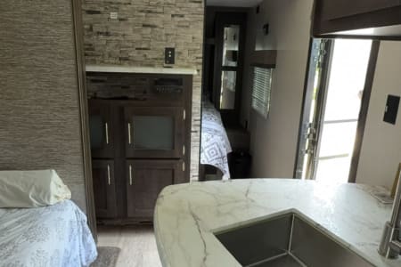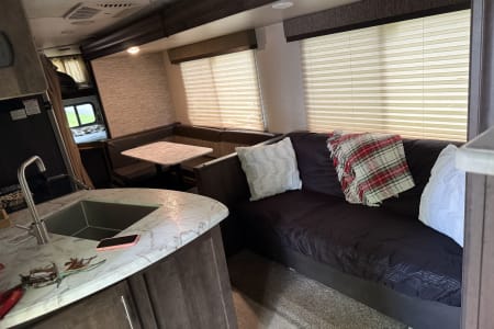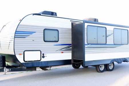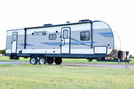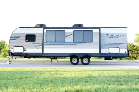Sportsmen LE 291BHLE is a travel trailer featuring bunk beds, 2 ac units, a rear bath, and a main living area with an 80-inch dinette slide out. It includes a spacious kitchen, a comfortable living space, and a well-designed bathroom. The trailer also boasts several standard features like LED interior lighting, a power vent in the bath, and a water heater bypass kit.