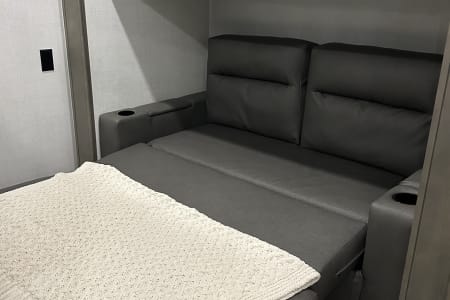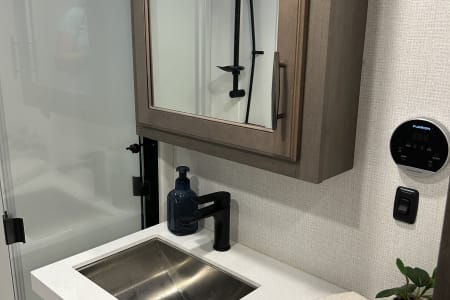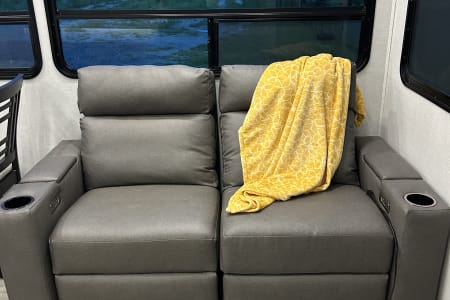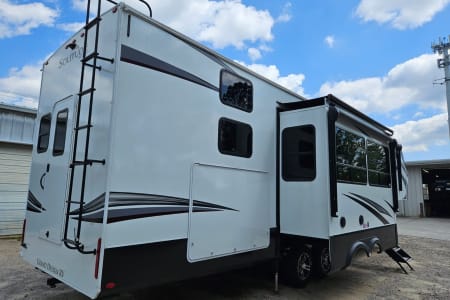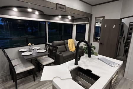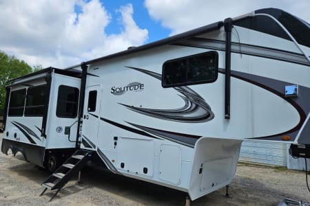 Enjoy the ultimate glamping experience in our beautiful 2023 Grand Design Solitude – a spacious fifth wheel that feels like a home away from home. Perfect for families, groups, or anyone who wants comfort and style on the road.