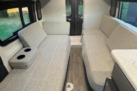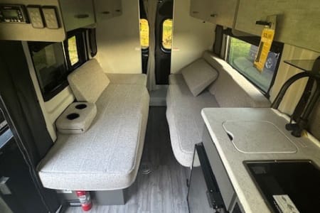 This camper van is a new 2024 Thor Dazzle 2LB. It is perfect for couples to explore in an intimate setting or for that long road trip. It is on a RAM ProMaster chassis with a V6 engine . It has the bare essentials bathroom with toilet, shower, and sink. With bench seats that turn into a full size bed making sleeping comfortable. It also has a small kitchen with fridge, stove, and microwave to meet your camping needs.