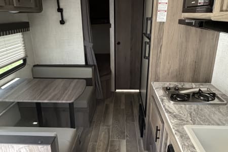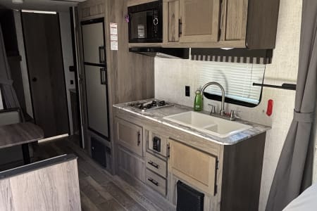 Ready to turn your next getaway into a rolling adventure? Say hello to your home-on-wheels – the perfect blend of comfort and the great outdoors! Whether you’re a seasoned road-tripper or just want to roast s’mores under the stars, our camper is your ticket to easy, cozy camping without the hassle of pitching a tent.