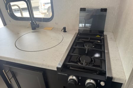 Galley Kitchen: Prepare your favorite meals with ease thanks to the 10 cubic foot refrigerator, pantry, and even an outside mini-kitchen for al fresco cooking!