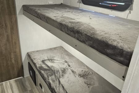 Bunkhouse: Four bunk beds in the rear, with storage underneath and easy access to the full bathroom