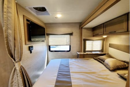 Get ready for endless adventures as you experience the freedom of the open road on this pristine RV equipped with all of the essentials to make your trip comfortable and memorable. Being one with nature doesn’t mean you have to rough it. You can explore nature with all of the comforts of home like a comfortable bed, warm showers, heating and ac, a full kitchen and more!