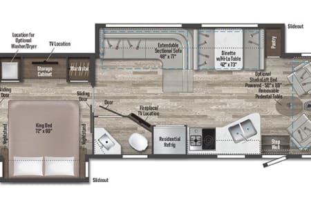 Storage: Ample exterior lighted storage compartments and under-bed storage.