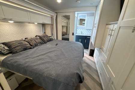 Other Notable Features: 5,500-watt Cummins Onan gas generator, 2,000-watt pure sine inverter/charger, and a Winnebago Control system with a 7" touchscreen.