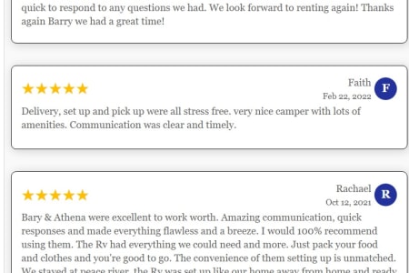 We have been renting RVs since 2021; our last camper in Florida was a "Super Host" with over 25 - Five Star reviews! Don't forget your 4-legged friends, we don't charge for pets.