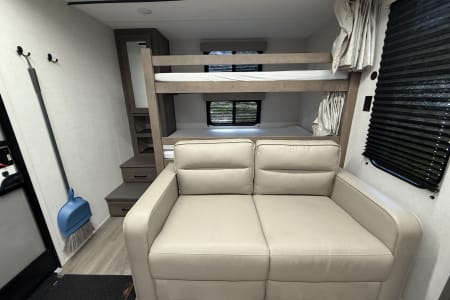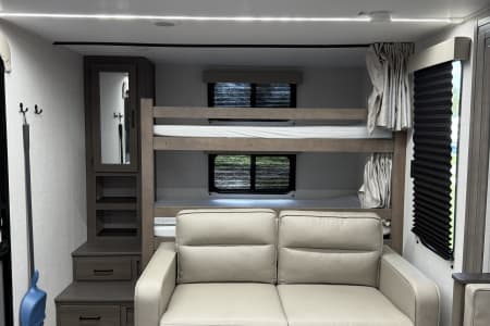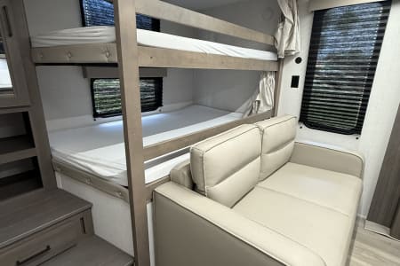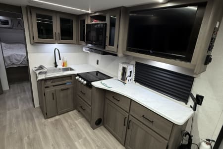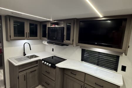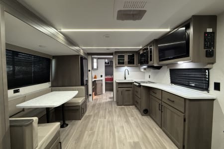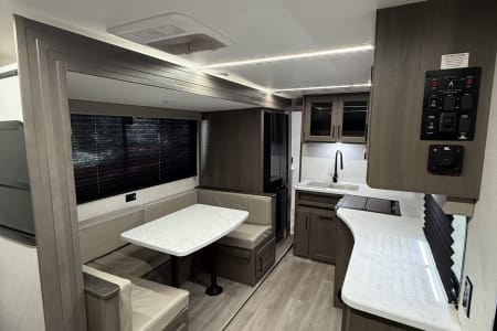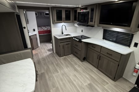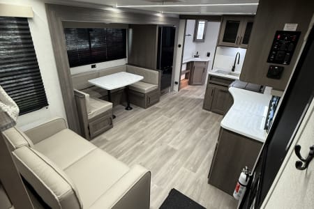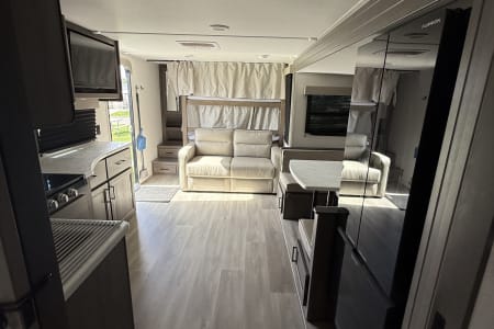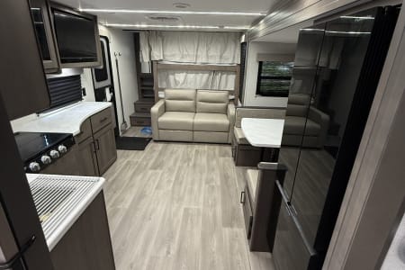 Modern, Spacious Interior – With a beautifully designed layout and top-of-the-line finishes, this trailer feels more like a luxury suite than a camper. Enjoy a cozy living area, full kitchen, and comfortable sleeping quarters that easily accommodate [insert number of guests it sleeps].