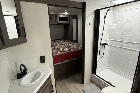 Private Bathroom – Enjoy the convenience of a full bathroom with a shower, toilet, and sink – no more relying on campground facilities.