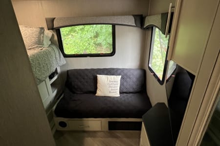 Enjoy the comfort of a well designed living space with ample room for relaxation and entertainment. Cook your favorite meals with ease using the state of the art appliances including a refrigerator microwave and stove. The RV features a cozy master bedroom with a queen size bed as well as additional sleeping options for guests. Freshen up in the stylish bathroom equipped with a shower sink and toilet and a half bath in the bunk room at the back of the RV. Stay entertained with flatscreen TV sound system and Wi-Fi connectivity.