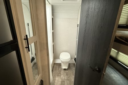 Bathroom with full shower and toilet (no campground hikes at night!)