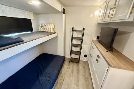 Center Bunk Room: Features a bunk room and dresser—perfect for kids or extra guests. There is a loft sleeping space perfect for two kids located above the center bunk room.