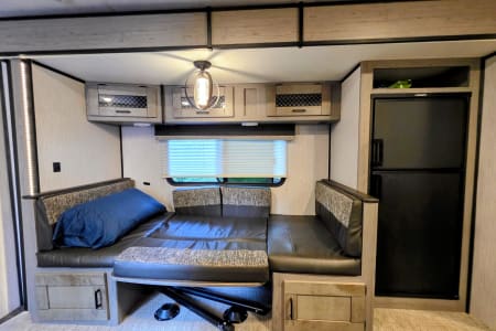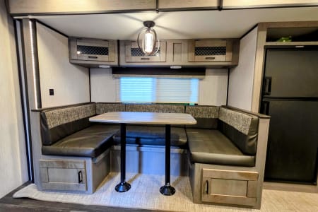 Kick back in the comfortable dinette or enjoy the provided camp chairs.