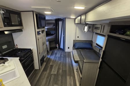 Sleeps 5-6 (King Bed, Bunks, Convertible Dinette)